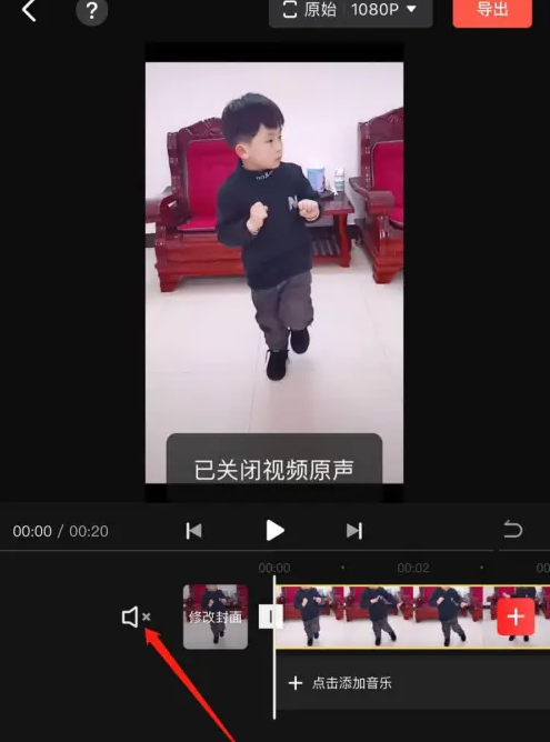 然后點擊音量按鈕,點擊后就出現(xiàn)“已關閉視頻原聲”,此時視頻就沒有聲音了。