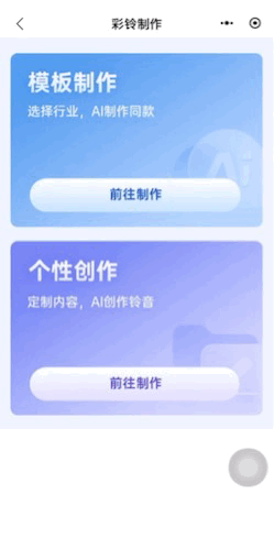 在中國電信特別推出的“政企5G視頻彩鈴”工具型小程序中,“彩鈴制作”是核心功能模塊之一,融合了全新的AIGC創(chuàng)作能力,提供“模板制作”和“個性創(chuàng)作”兩種方式,滿足用戶在不同場景下進行宣傳視頻制作的需求。